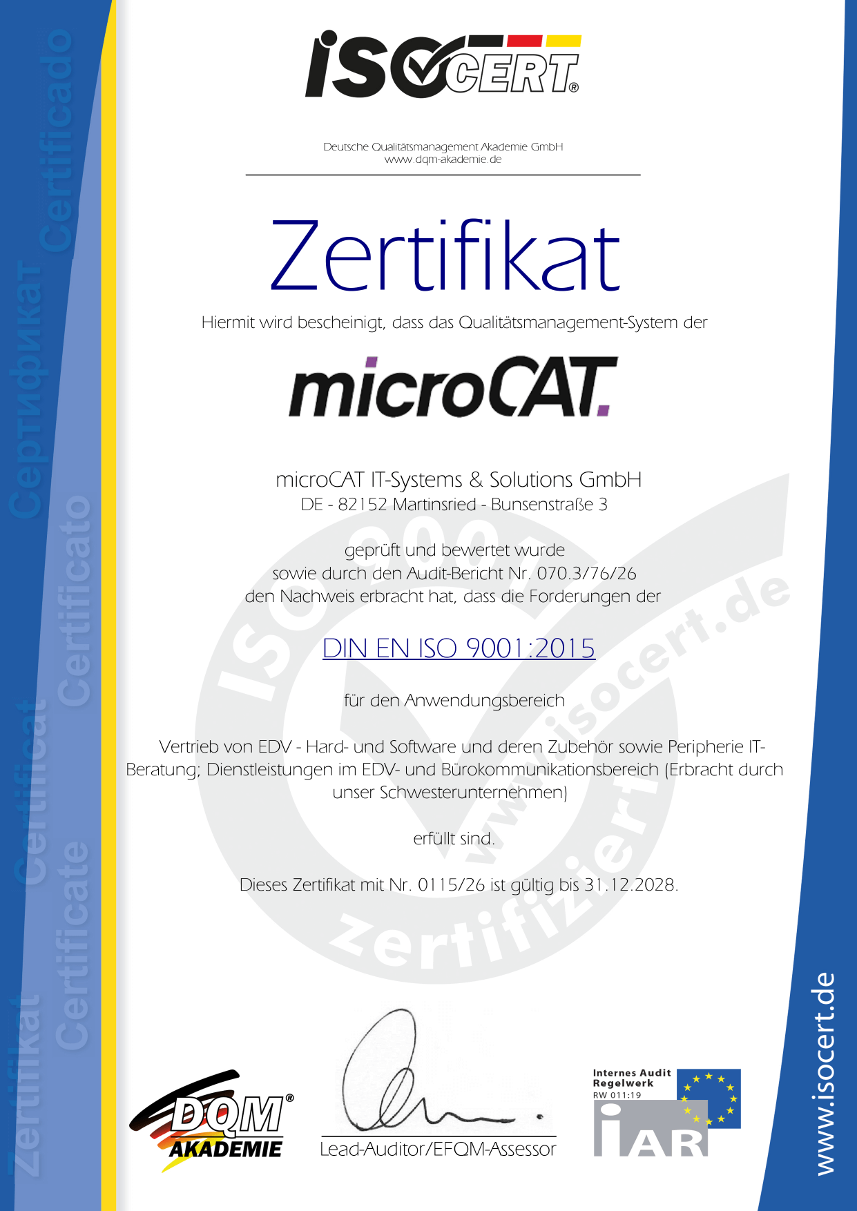 Diese Norm steht für konsequente Kundenorientierung, effiziente Abläufe und eine hohe Prozessqualität. Unsere erfolgreiche Rezertifizierung zeigt: Wir arbeiten strukturiert, transparent und verlässlich – von der Planung bis zur Umsetzung.